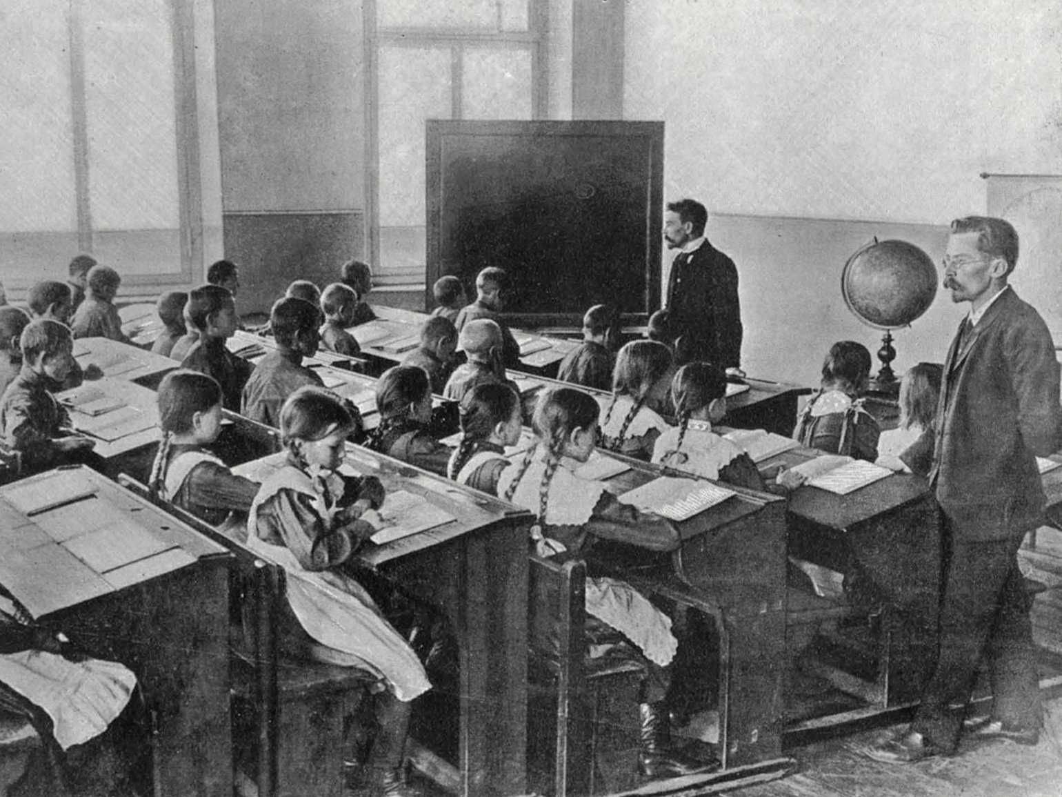 В двухклассном училище при фабрике Товарищества мануфактур братьев Г. и А. Горбуновых, 1913 годФото: «Товарищество бумаго-ткацкой мануфактуры бр. Г. и А. Горбуновых: краткий исторический очерк. 1826–1913» / Российская государственная библиотека