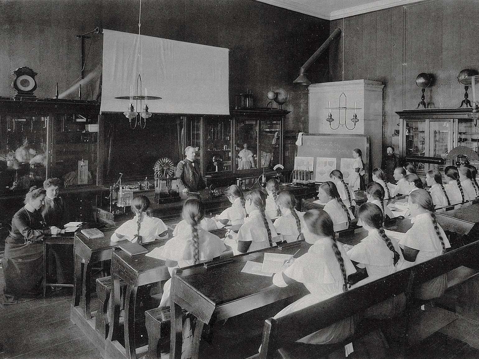 Урок физики, Смольный институт, 1905 годФото: «Императорское воспитательное общество благородных девиц в Смольном в Петербурге» / Товарищество Р. Голике и А. Вильборг / РНБ / НЭБ