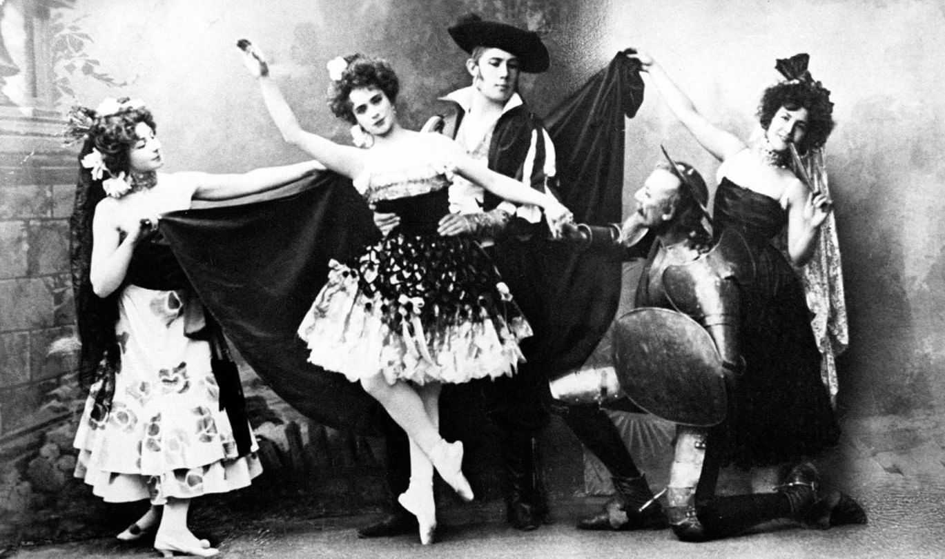 Сцены из балета «Дон-Кихот». Китри — Любовь Рославлева (в центре). Постановка А.А. Горского. Москва, Большой театр. 1900 год