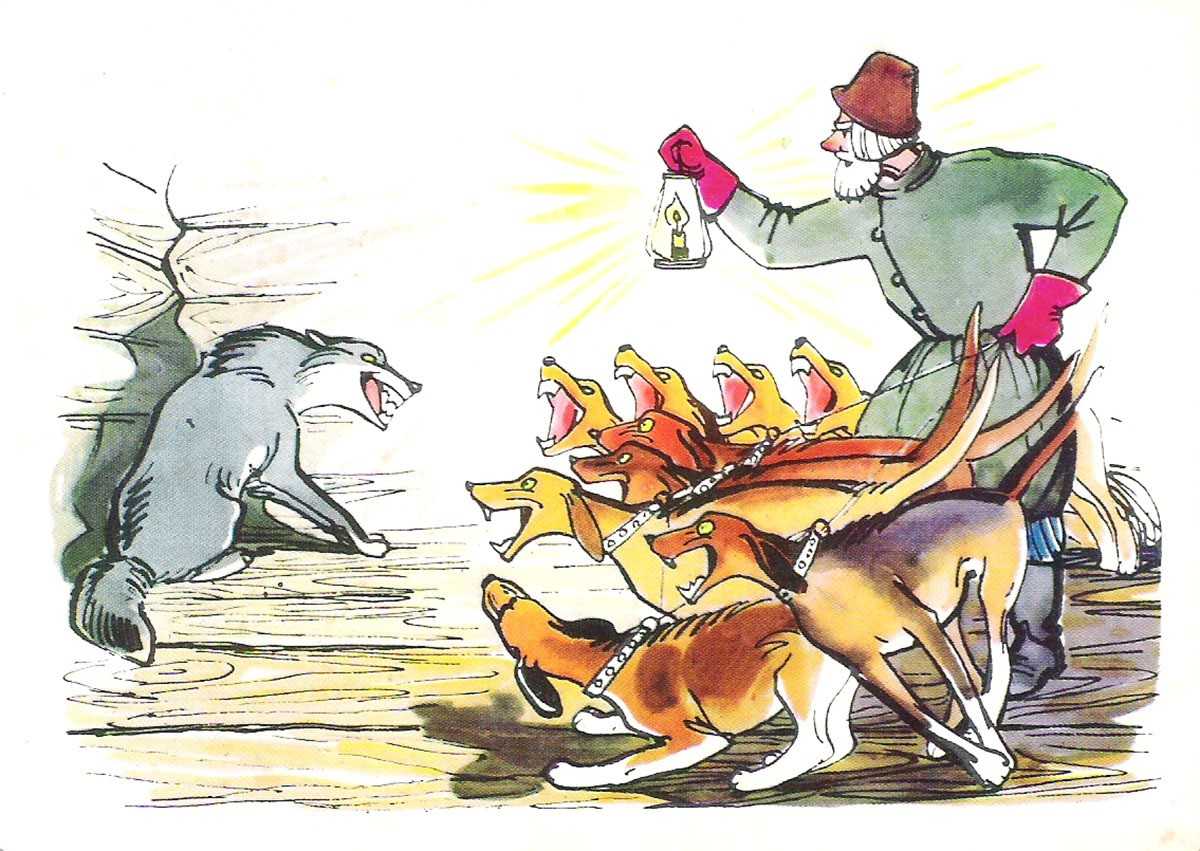 Серому хищнику не дал договорить седой Ловчий. Он сказал, что волкам верить никогда нельзя, и спустил на него свору гончих псов.
