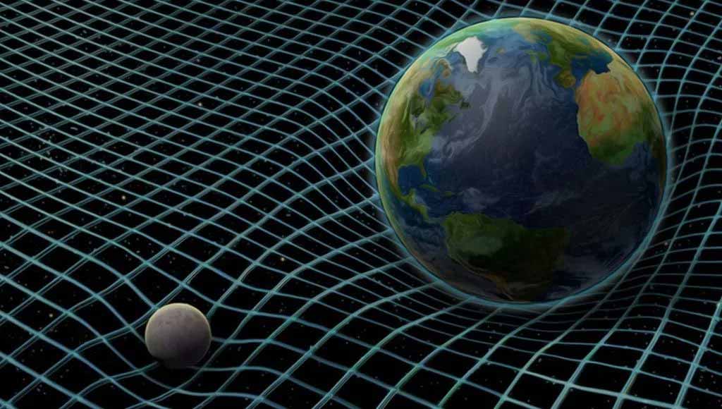 Аналогично происходит и с Землёй: поскольку она являет собой массивный объект, она искривляет «ткань» пространства и притягивает к себе материю, время и свет.