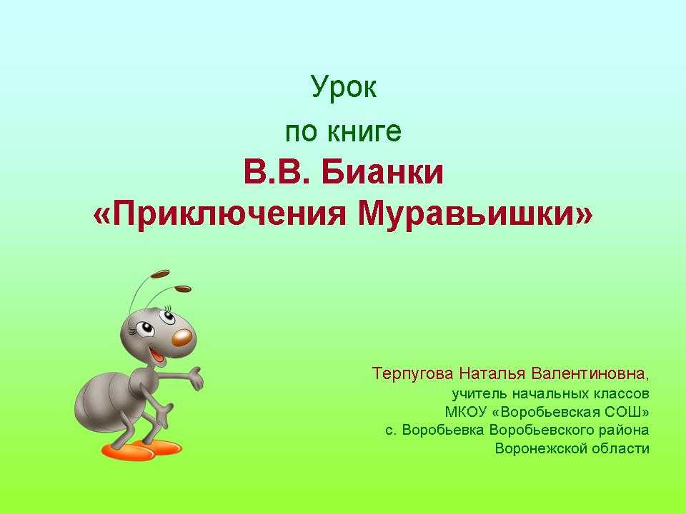 Опоздавшие муравьи остаются на улице. Поэтому пора и муравью с дерева спускаться. Вдруг порыв ветра сорвал сухой листок и унёс его далеко от дома. Принёс его ветер на поле за селом и там оставил. При падении листика муравей ушиб ноги.