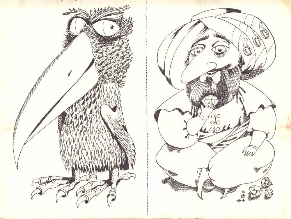 Вдруг солнце заслонила тень летящей гигантской птицы. Синдбад вспомнил слышанные им раньше рассказы о птице Рух, которая так велика, что кормит своих птенцов слонами. Он понял – сюда летит она.