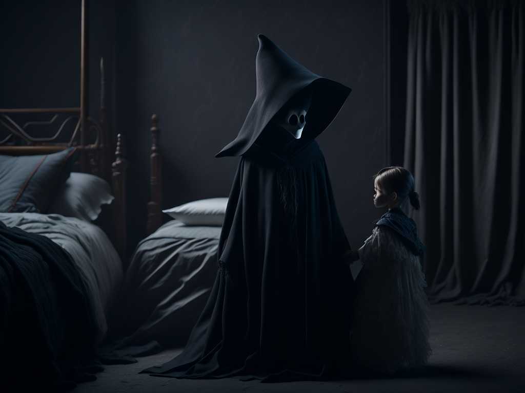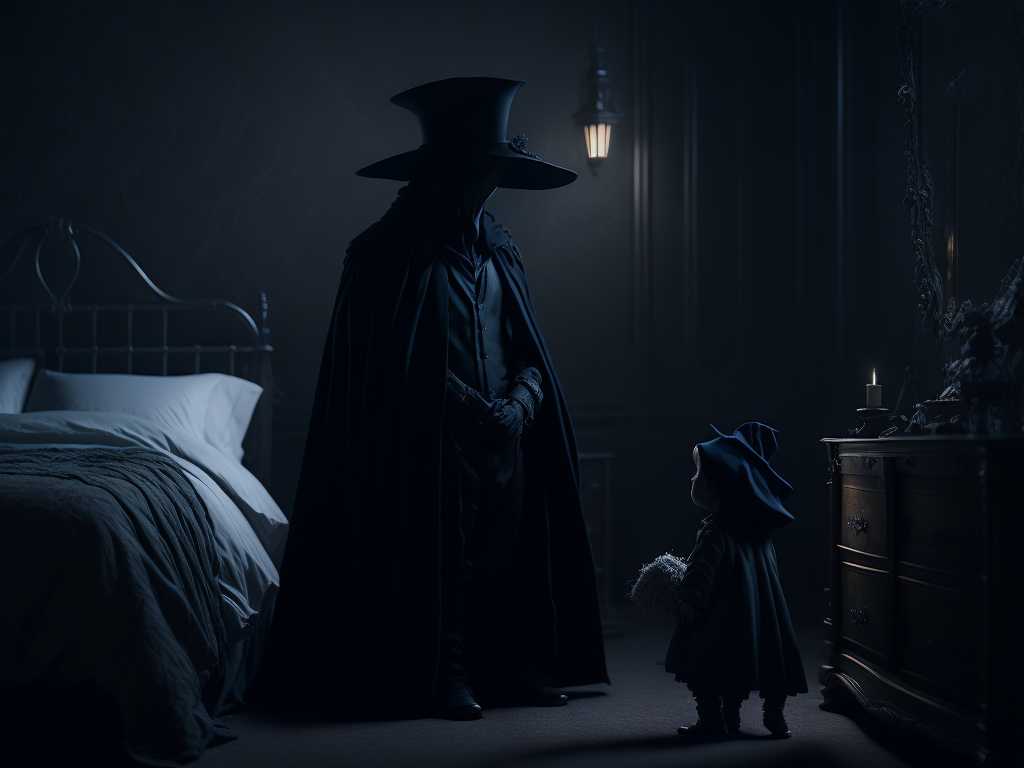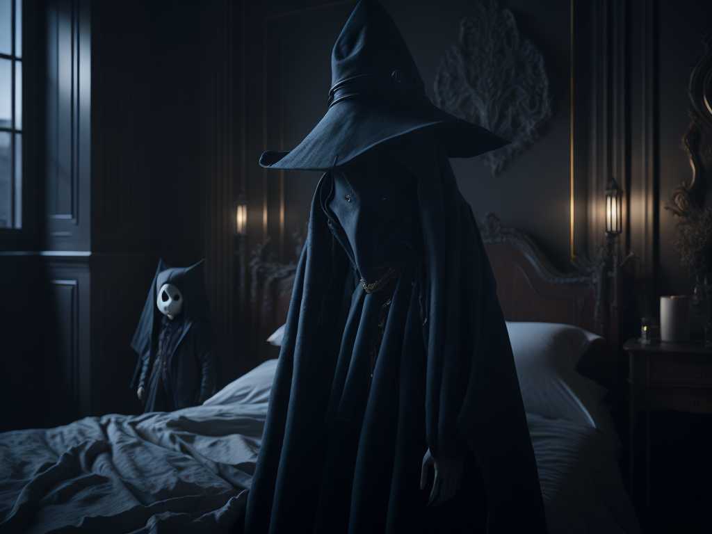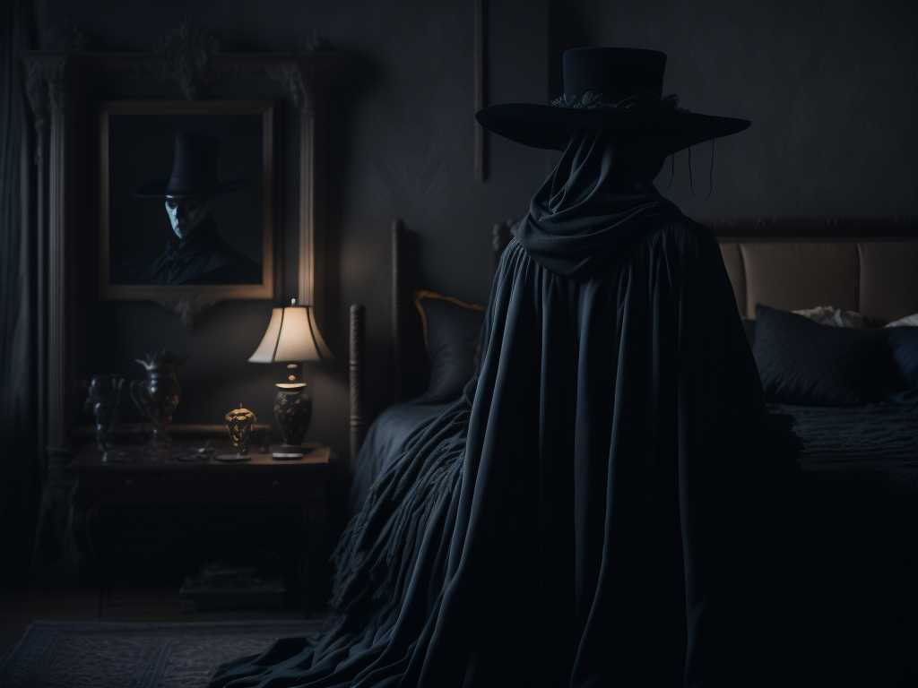 Состояние сонного паралича и черный силуэт человека в плаще и шляпе