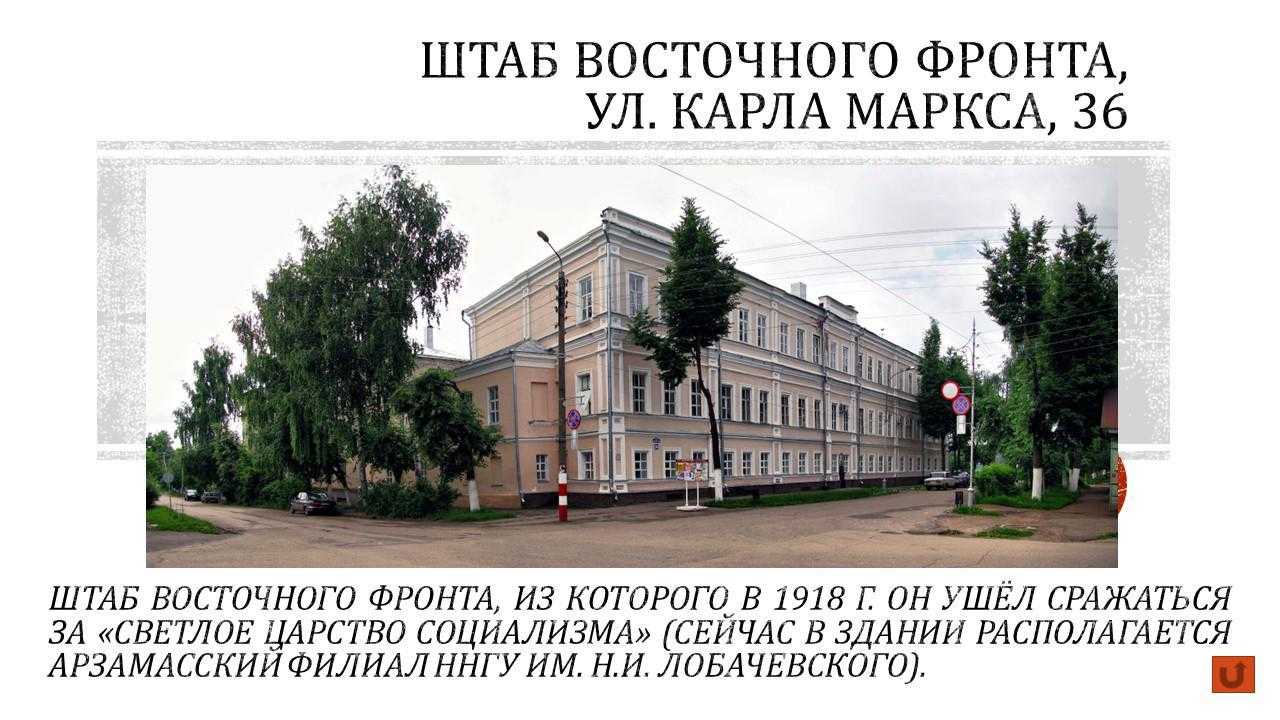 Улица К. Маркса, 36 — здание, где размещался штаб Восточного фронта
