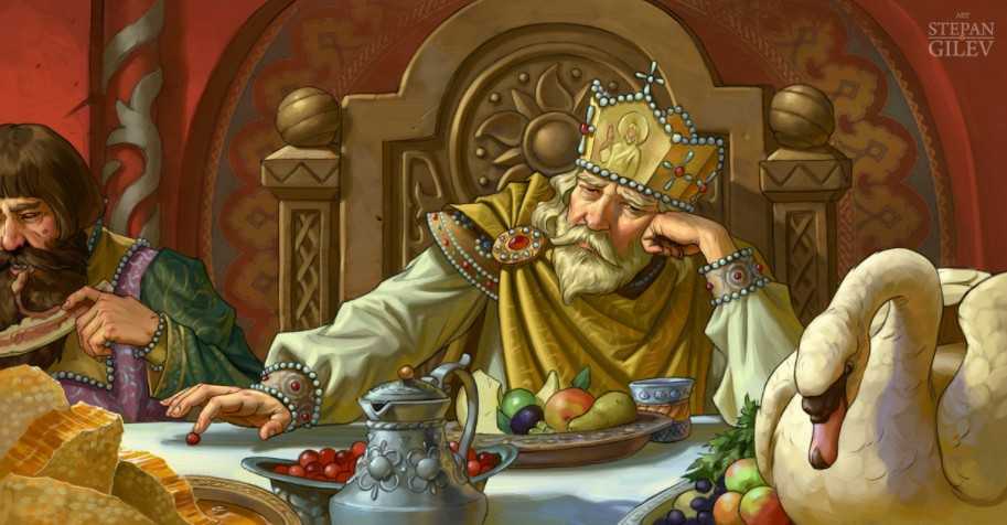 Выпил тот вино и издал свой смертоносный свист, закричал во всю мощь по-звериному. От такой силы черной на теремах покосились маковки, окна рассыпались. Все люди, что были вокруг, упали мертвыми. Успел от погибели князь шубой укрыться.