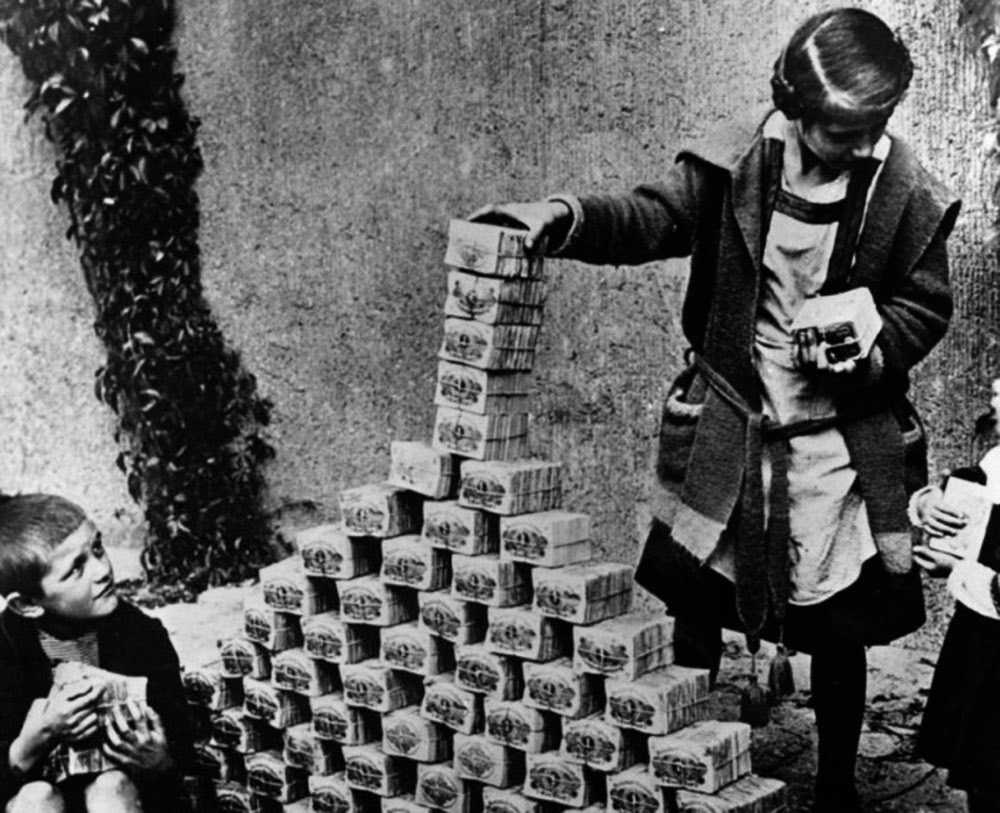 Инфляция: дети играют с пачками обесценившихся купюр.