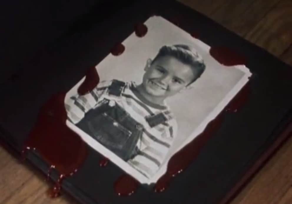 Джорджи, маленький брат Билла Денбро, отправляется в дождливый день один на прогулку. Бумажный кораблик попадает в канализацию, откуда появляется зловещее лицо Пеннивайза. Клоун заманивает ребенка корабликом, хватает за руку. Малыш погибает ужасной смертью. После трагической гибели брата Билл находит альбом с фотографиями. Из альбома льется кровь, которую взрослые не видят.