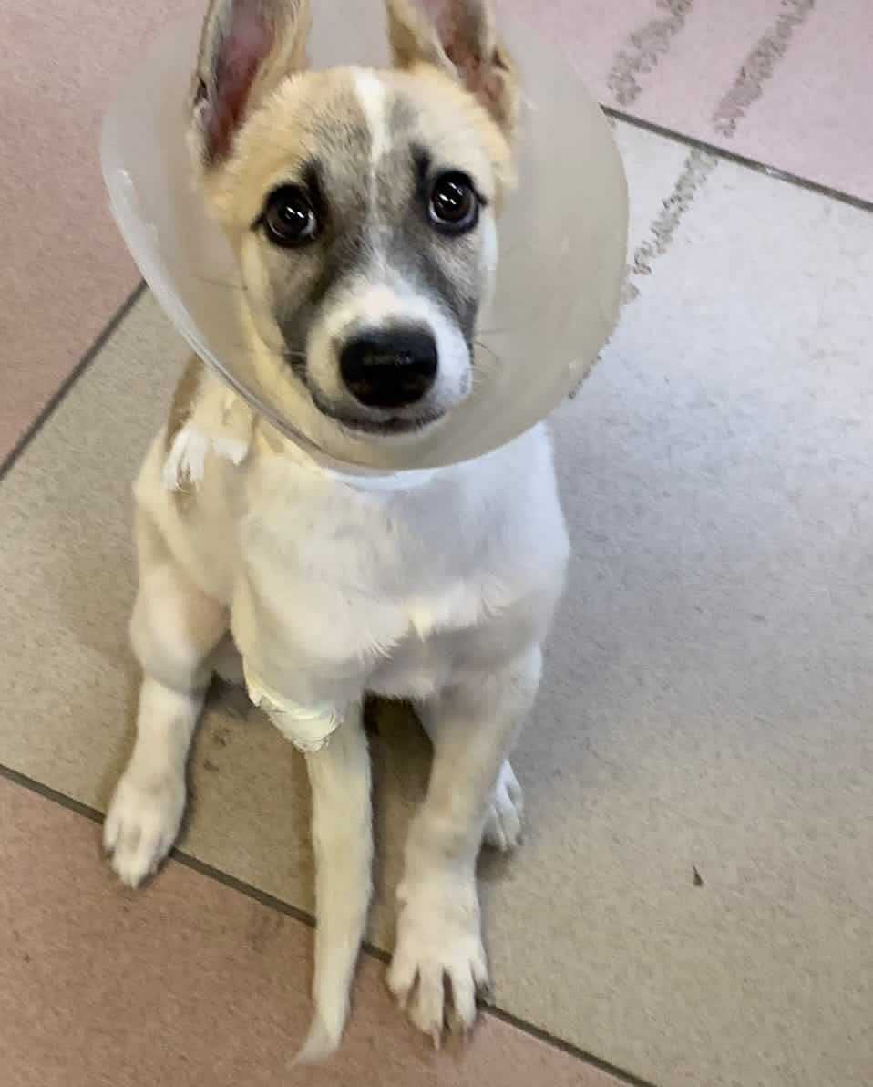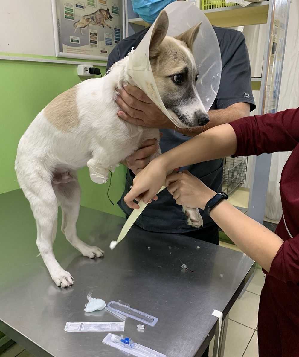 В конце августа этого года к волонтёрам благотворительного фонда помощи животным «Собака счастья» обратилась женщина и сообщила, что на улице лежит щенок — животное прибилось к подъезду и у него очень сильно повреждена передняя лапа.
