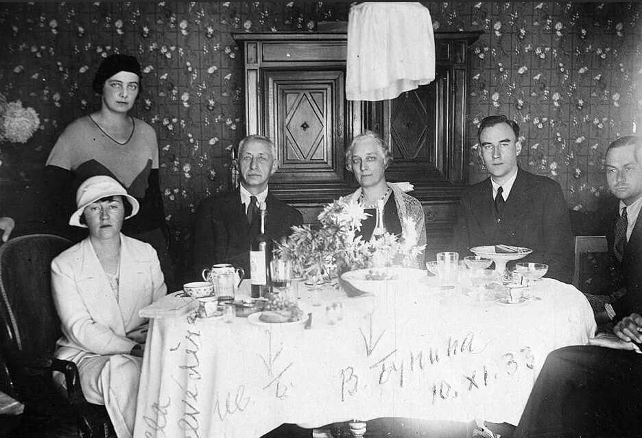 На получении Нобелевской премии. Слева Галина, в центре Вера Николаевна, первый мужчина слева Иван Алексеевич Бунин