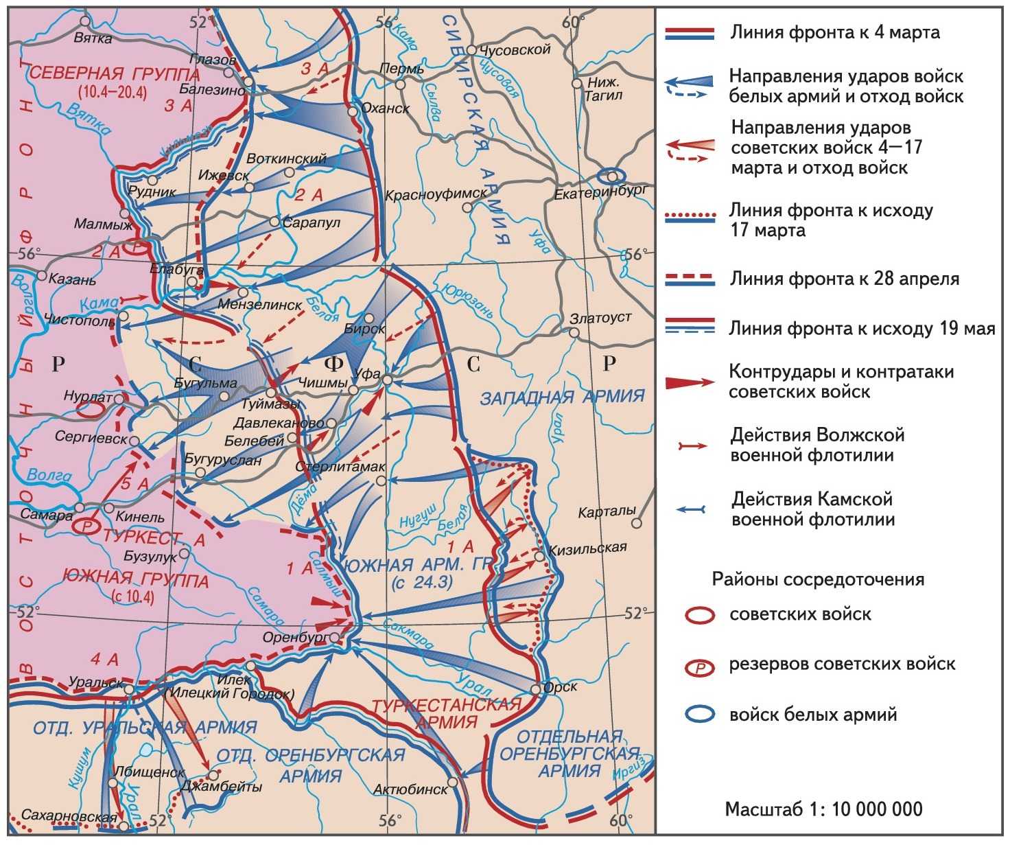 В результате контрнаступления РККА и продолжительных сражений армия Колчака отступила за Урал, утратив завоевания весны 1919 г. |