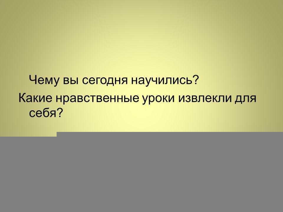 Чему вы сегодня научились? Какие нравственные уроки извлекли для себя?